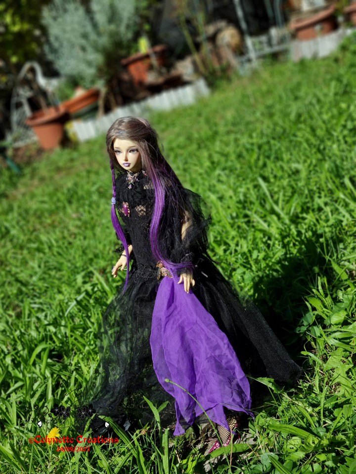 Robe courte sur le devant et longue à l'arrière avec un col moulti-usage, le tout assorti aux chaussures violette que j'avais acheté il y a des années et qu'auncune Iple ou doll de Stef ne pouvait mettre, ni même Llivia.